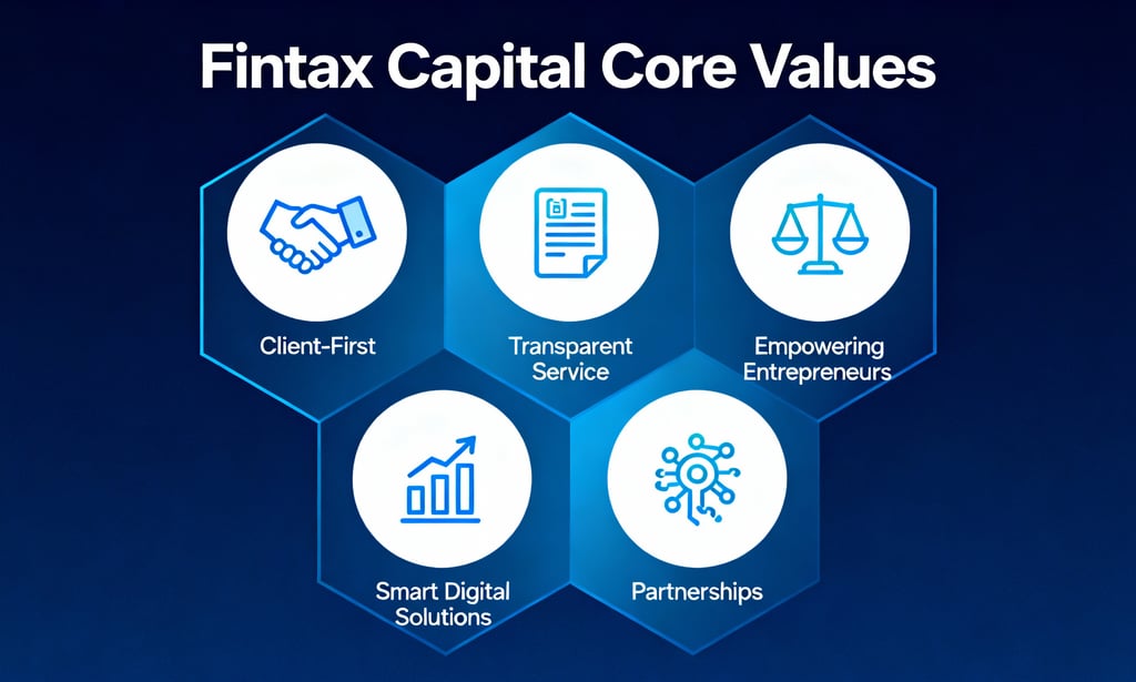 The complexity of running a business shouldn't slow your growth. Fintax Capital brings the most critical pillars of business—Finance, Marketing, Law, Operations, and Support—under one powerful, integrated roof. We eliminate the administrative burden so you can focus on your vision and bottom line