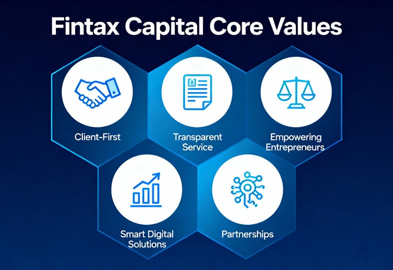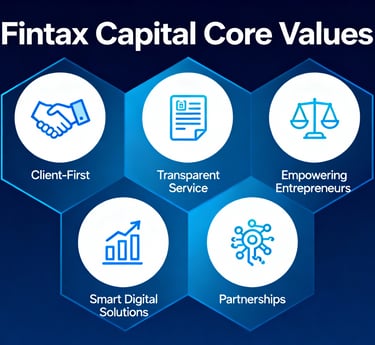 At FinTax Capital, we empower small and medium enterprises with a one-stop solution for growth, security, and opportunity. Our mission is built on these core values: